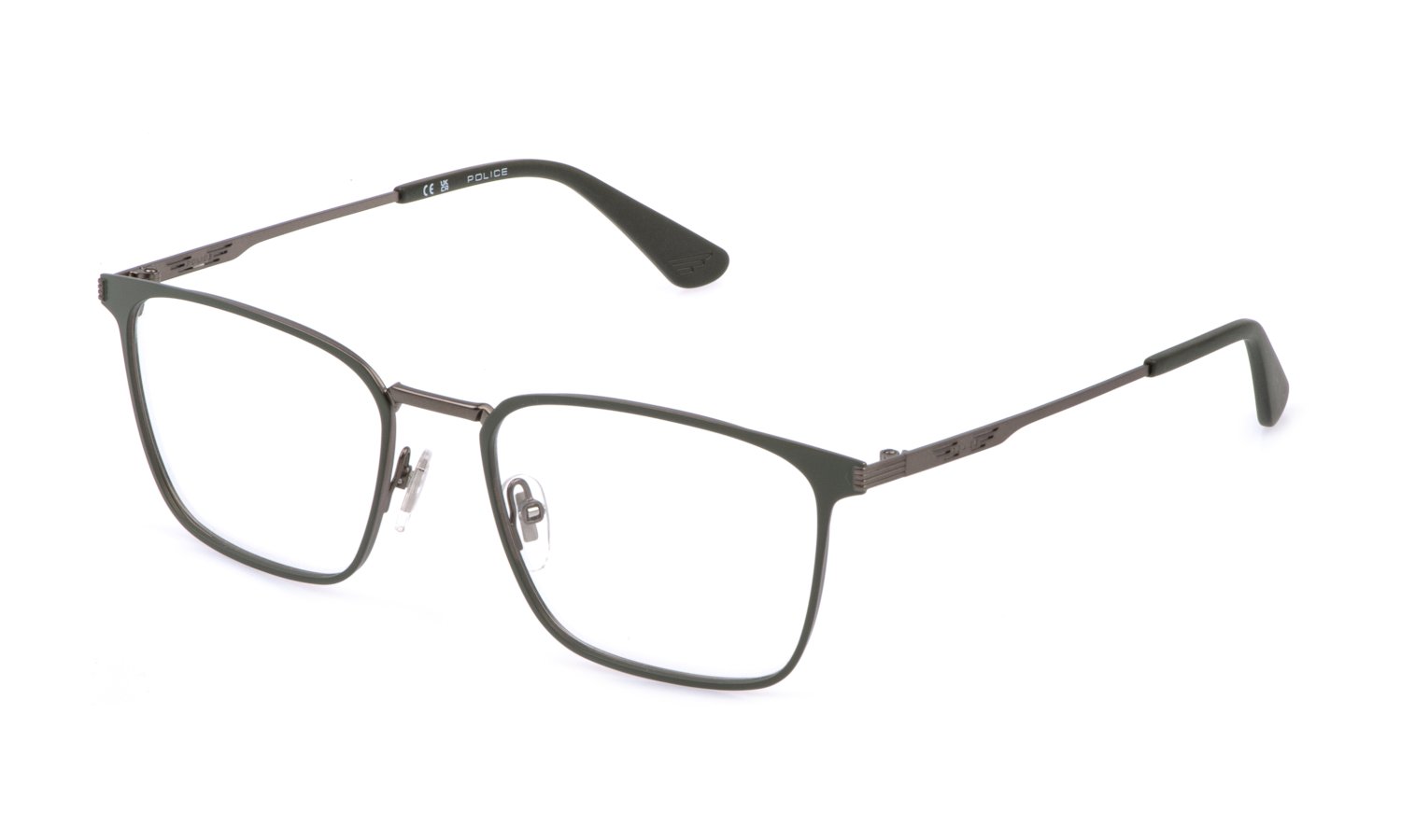 Gafas graduadas POLICE VPLQ70 584 con montura en color SHINY GUN W/SANDBLASTED AND/OR MATT PART. El modelo VPLQ70 tiene las siguientes características. Calibre: 52 y 55, puente: 19 y largo de varilla: 145.Incluyen estuche original.